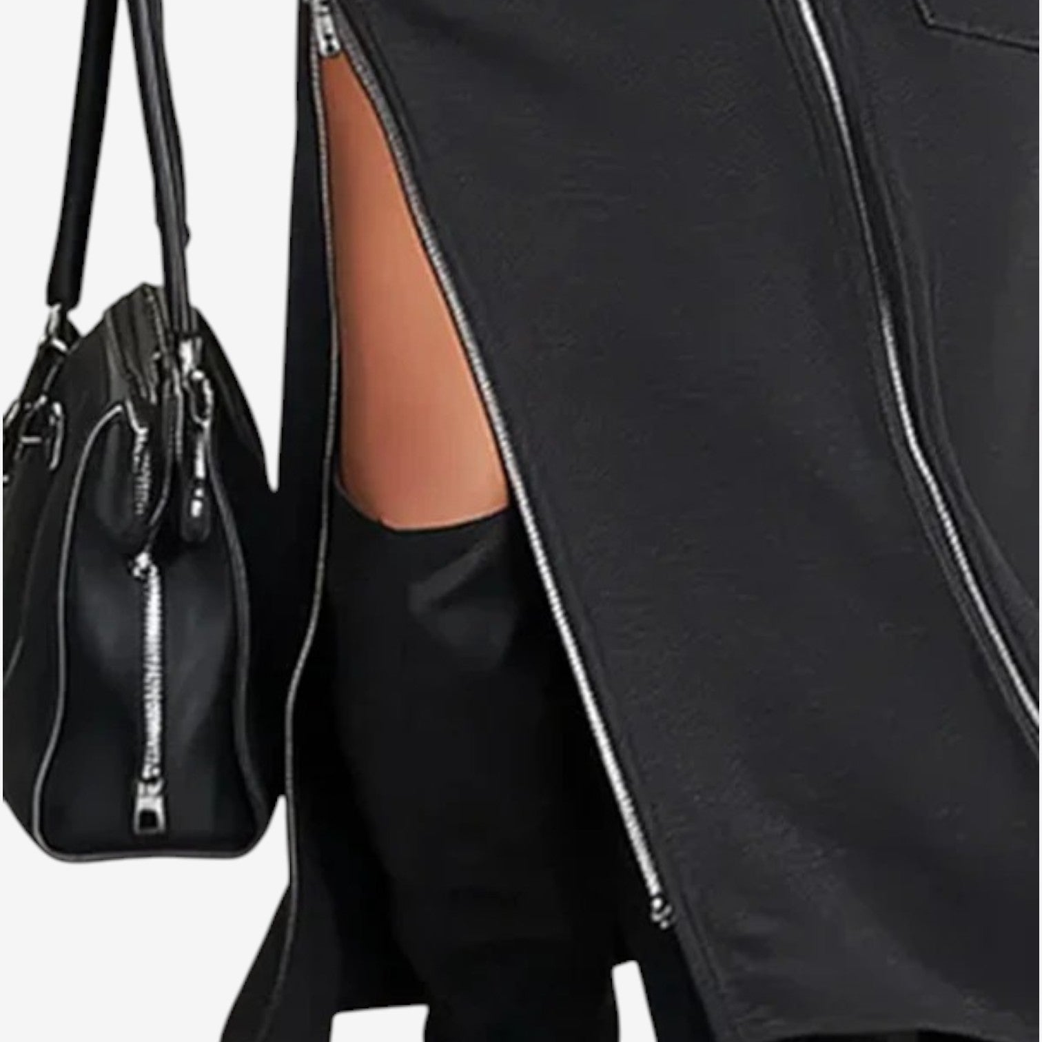Una silhouette elegante cattura l'attenzione grazie alle linee pulite e ai dettagli grafici delle cerniere che si muovono con discreta sicurezza. Realizzato in un materiale morbido e di alta qualità, il modello segue il corpo con precisione, consentendo movimenti naturali. La scollatura alta e la forma allungata creano una raffinata tensione tra forza ed eleganza. Si adatta senza sforzo dal giorno alla sera con un semplice cambio di stile.