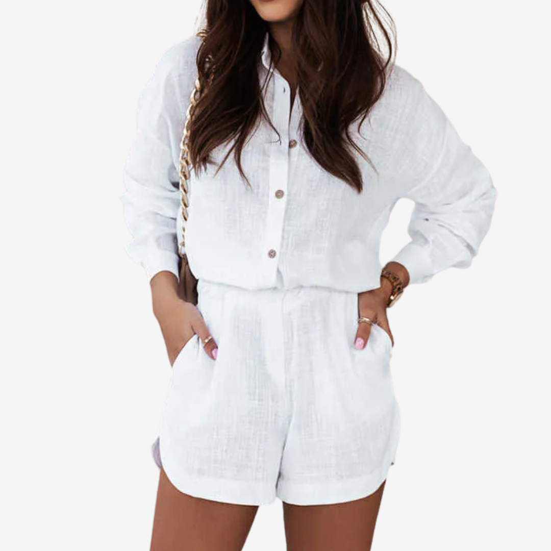 Il completo Beaira™ è il perfetto connubio tra comfort e stile vivace, perfetto per le giornate di sole e i look casual chic. Composto da una camicia dalla vestibilità comoda con un colletto aderente e pantaloncini coordinati, è realizzato in tessuto leggero e traspirante che ti mantiene fresca aggiungendo un tocco di colore al tuo guardaroba. Con le sue fantasie audaci e il design versatile, Beaira™ si adatta perfettamente alle passeggiate in spiaggia e alle uscite in città. Abbinalo a sandali per un look casual o arricchiscilo con zeppe e accessori per un look giocoso e alla moda.